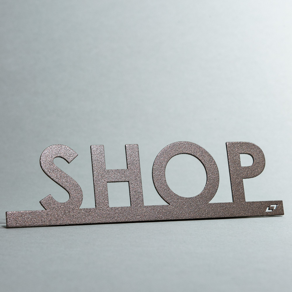 Μεμονωμένα (φλατ) γράμματα, από Αλουμίνιο πάχους 1,5mm lasercut. Στήριξη σε οποιαδήποτε λεία επιφάνεια με ισχυρή ταινία διπλής όψης. Βαφή ηλεκτροστατική με εγγύηση 5 χρόνια. Κατάλληλο για εξωτερική και εσωτερική χρήση