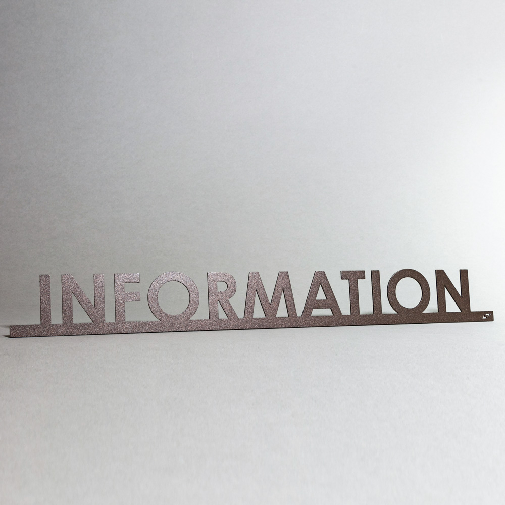 Μεμονωμένα (φλατ) γράμματα, από Αλουμίνιο πάχους 1,5mm lasercut. Στήριξη σε οποιαδήποτε λεία επιφάνεια με ισχυρή ταινία διπλής όψης. Βαφή ηλεκτροστατική με εγγύηση 5 χρόνια. Κατάλληλο για εξωτερική και εσωτερική χρήση