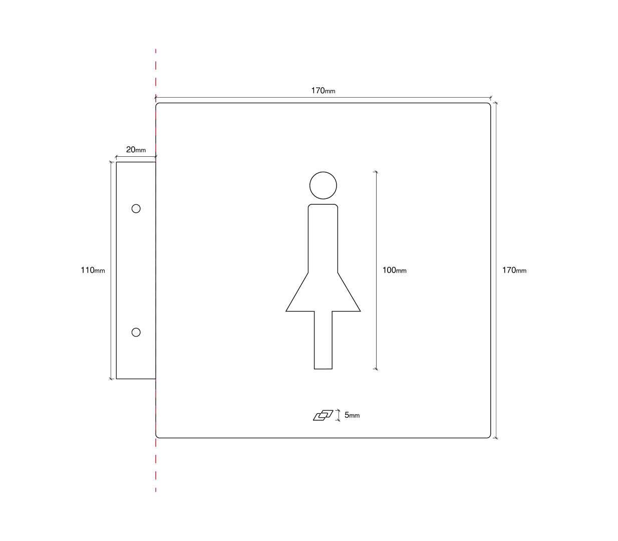 Προβαλλόμενη πινακίδα (projecting) κατασκευασμένη από αλουμίνιο πάχους 1,5mm, με laser cut κοπή. Η στήριξη πραγματοποιείται εύκολα σε οποιαδήποτε λεία επιφάνεια με ισχυρή ταινία διπλής όψης, ενώ υπάρχει και η δυνατότητα τοποθέτησης σε τοίχο με ούπατ και βίδες.